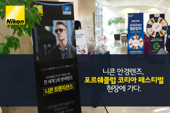 에실로코리아는 지난 14일과 15일 양일간 경주시에 위치한 경주 드림센터에서 개최된 ‘포르쉐클럽코리아 Family Fall Festival 2017’에 변색렌즈인 니콘안경렌즈 ‘트랜지션스’를 후원 한 것. 포르쉐클럽코리아 페스티벌은 포르쉐 오너들을 대상으로 매년 열리는 여가 문화행사로 150명이 참석한 가운데 성황리에 종료됐다.