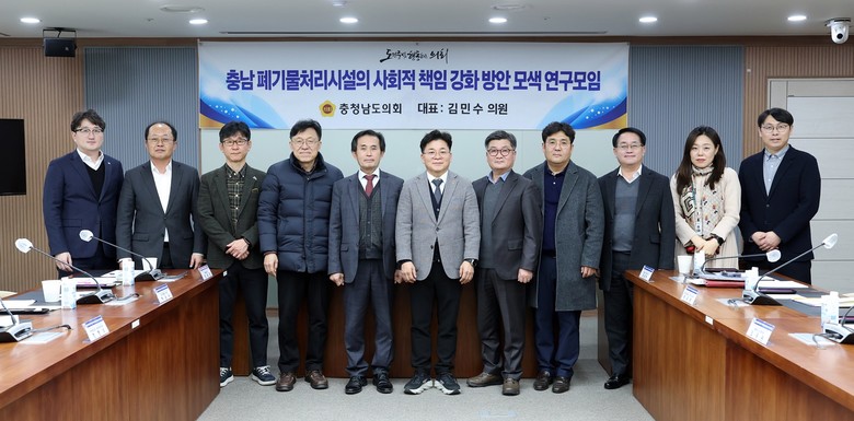김민수 의원(비례·더불어민주당)은 “폐기물처리시설 문제는 일방적인 행정과 보상만으로 해결할 수 없는 과제”라며, “문제 해결을 위해 주민 신뢰 구축과 투명한 운영, 과학적 관리가 함께 이뤄져야 한다”고 강조했다. 이어 “이번 연구모임을 통해 논의된 결과를 토대로 관련 조례 제·개정을 검토하고, 충청남도 폐기물 정책 수립 과정에 적극 활용하겠다”고 밝혔다.