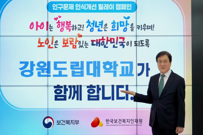 [강원도 세계타임즈=김민석 기자] 강원도립대학교 김광래 총장은 5월 28일(수), 인구감소와 저출생 문제에 대한 사회적 공감대를 확산하고자 ‘인구문제 인식개선 릴레이 캠페인’에 동참했다.