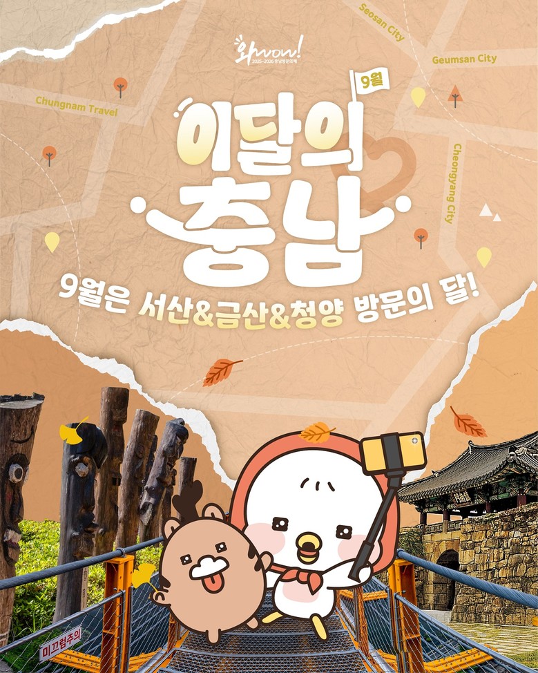 도는 매달 도내 시군 대표 관광지와 지역축제·행사(이벤트), 특별한 관광상품 등을 도 공식 사회관계망(SNS)과 충남관광 누리집을 통해 이달의 충남으로 알리고 있다.