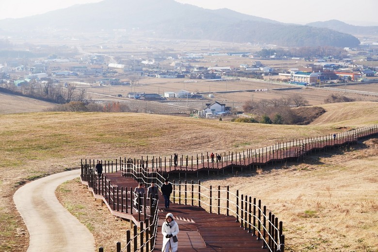 서산의 떠오르는 관광지인 서산한우목장 웰빙산책로는 푸르른 초지 경관을 배경으로 산책로와 전망대를 갖춰 방문객들이 자연 속에서 휴식할 수 있는 공간이다.