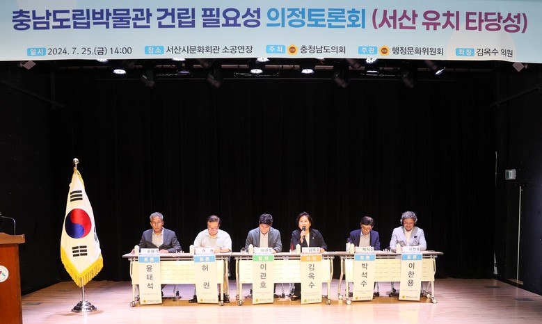 도의회는 25일 서산문화회관 소공연장에서 김옥수 의원(서산1‧국민의힘)을 좌장으로 「충남도립박물관 건립 필요성과 서산 유치 타당성」을 주제로 의정토론회를 개최했다.