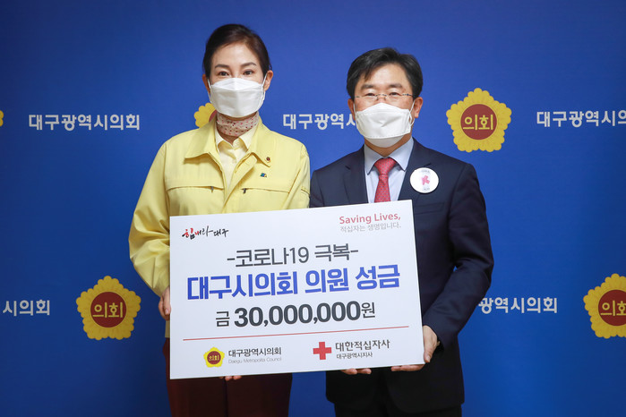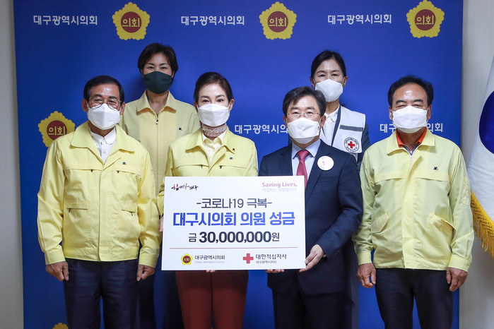 이번 성금 모금은 대구시의원 30명 전원이 100만 원씩을 자발적으로 모금해 3천만 원을 대한적십자사에 기탁하였으며, 성금은 코로나19 극복을 위한 구호사업에 쓰여 질 계획이다.