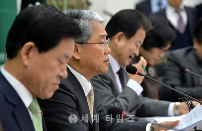 9일 오전 서울 여의도 국회 국민의당 당 대표실에서 김동철 비상대책위원장이 비대위원·중진의원 연석회의 모두발언을 하고 있다. 김 비대위원장은 국고보조금 45억여원을 쓰는 민주연구원이 아직은 대선후보도 아닌 일개 당원 신분인 더불어민주당 문재인 전 대표의 선거 기획사로 전락했다라며 개헌 저지 보고서 파동은 명백한 국고보조금 유용사건이라고 비판했다. 2017.01.09