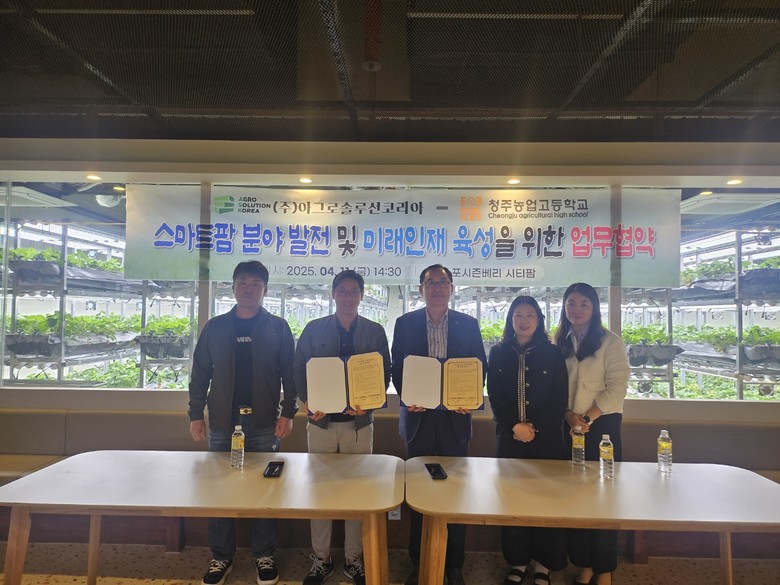 [충북 세계타임즈=이현진 기자] 청주농업고등학교(교장 고종현)는 11일(금), 주식회사 아그로솔루션코리아(대표 이상훈)과 스마트팜분야의 발전 및 인재 육성을 위한 업무협약을 체결했다.