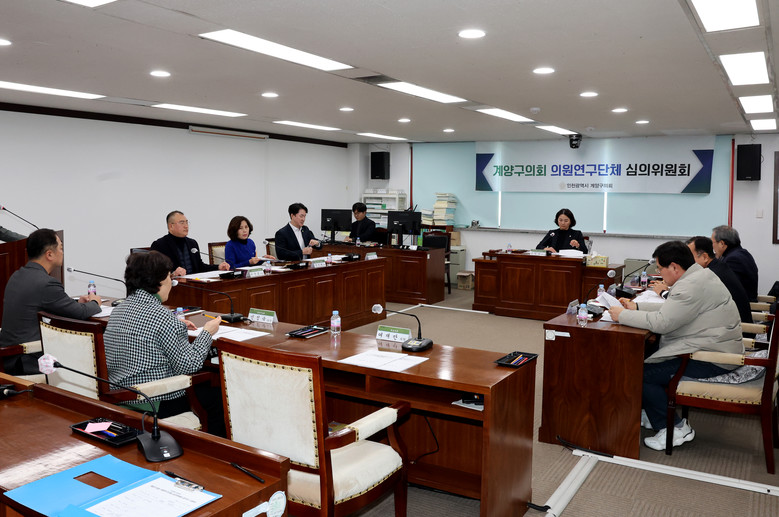 [계양구 세계타임즈=심하린 기자] 인천시 계양구의회(의장 신정숙)는 지난 21일 계양구의회 5층 위원회실에서 2025년도 제1회 의원연구단체 심의위원회를 개최했다.