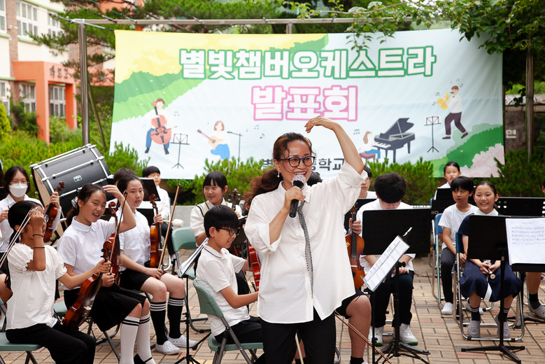 별내초등학교 황영숙 교장은 “개인적으로 문화예술의 기회를 접하기 어려운 지역에 위치하고 있는 학교 환경 속에서도 아이들과 함께 음악으로 하나될 수 있는 기회가 생겨 기쁘다. 아이들의 등굣길이 오늘 전한 이 음악처럼 곱고 행복하고 활기찼으면 좋겠다. 앞으로 별빛챔버오케스트라가 지속 운영되어 아이들