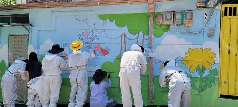 벽화는 ‘함께 웃는 우리 동네’를 주제로, 가족과 자연 등 일상의 따뜻한 풍경을 밝고 부드러운 색감으로 표현해 정서적 안정과 시각적 즐거움을 더했다.