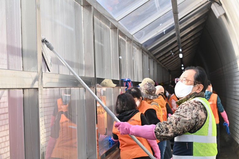 이날 집중 정비가 이뤄진 보행로 칸막이 부스는 지난 2020년 12월 터널 내 차량 배기가스와 소음으로부터 주민들을 보호하기 위해 경기도 특별조정교부금 15억 원이 투입되어 조성된 안전 시설물이다. 시는 이번 대청소를 통해 부스 창 등에 쌓인 찌든 때를 말끔히 제거하며 시민들에게 더욱 쾌적한 보행 공간을 선사했다.