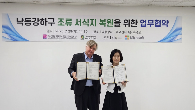 [부산 세계타임즈=이용우 기자] 부산시 낙동강관리본부(이하 본부)는 어제(29일) 오후 2시 30분 낙동강하구에코센터에서 비영리 환경단체 '새와 생명의 터(Birds Korea, 대표 나일 무어스)'와 함께 조류 서식지 복원과 생물다양성 증진을 위한 업무협약을 체결했다고 밝혔다.