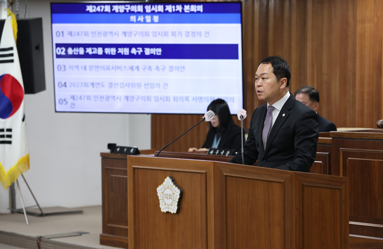 계양구의회는 결의안을 통해 ▶정부의 출산가정 지원 정책에서 소득 수준 제한 폐지 ▶출산과 육아휴직을 장려하는 사회 환경과 기업 문화 조성의 구체적인 추진계획 마련 ▶한국토지주택공사·인천도시공사와 적극적인 업무협약을 통한 신혼부부 및 다자녀 가구 주거 부담 완화 기금 조성 등을 요구했다.