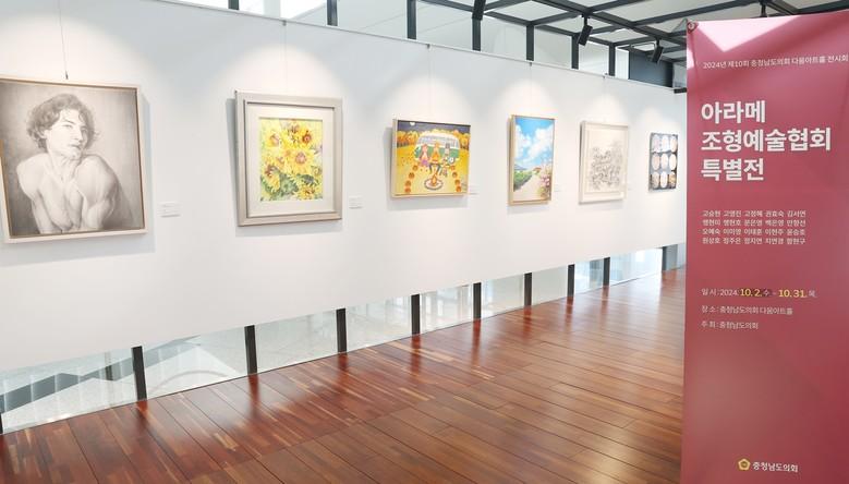 [충남 세계타임즈=백택기 기자] 충남도의회(의장 홍성현)는 2일부터 31일까지 도의회 다움아트홀에서 ‘아라메조형예술협회’의 10주년 특별전을 개최한다.
