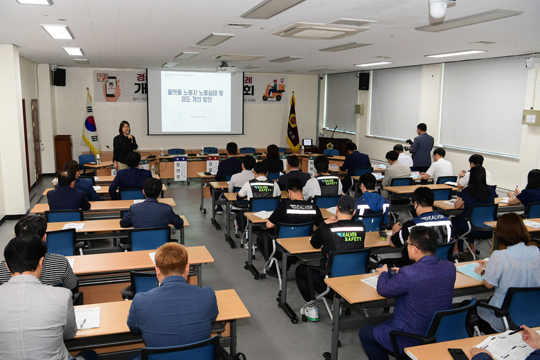 이번 토론회는 법의 사각지대에 놓여있는 플랫폼 노동자의 근로환경에 대한 현실을 고찰하고, 플랫폼 노동자의 산업재해 예방 및 근무환경 개선을 통해 노동자들의 권익 보호와 일반 도민의 안전을 도모하자는 취지의 조례안 개정에 각계의 다양한 의견을 듣고자 마련한 자리다.
