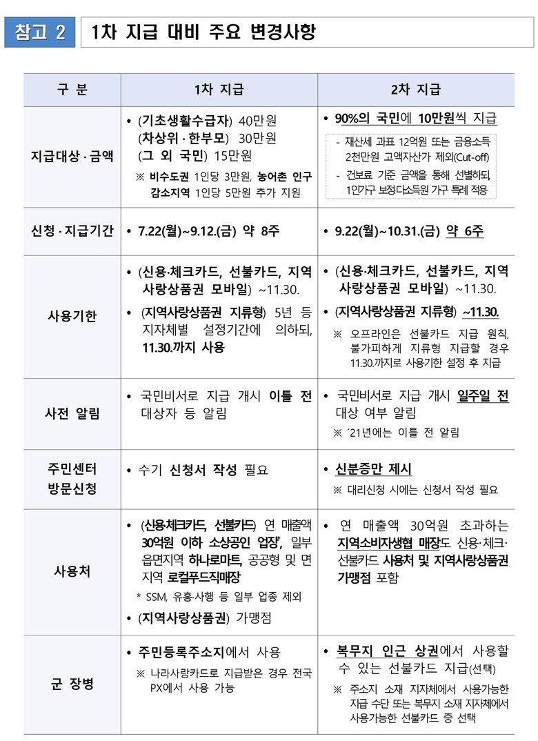 대상자 여부는 오는 9월 22일부터 ▲건강보험공단 ▲각 카드사 누리집·앱(온라인) ▲행정복지센터 ▲카드와 연계된 은행 영업점(오프라인) 등에서 확인할 수 있다.