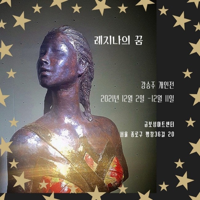 조각가 강승주의 '레지나의 꿈'이라는 제목은 EGO, REGINA라는 영단어에서도 알 수 있듯 '꿈을 향해 사는 여성인 나, 자아가 곧 여왕'임을 강조한다. 매력적인 여성의 두상을 입체 그대로 나타낸 조소와 여성 얼굴을 그린 회화가 주를 이룬다. 작가는 無의 진흙 속에서 성인(聖人)이자 왕(王)인 여인을 창조해냈다. 그리고 불가마 1250 °c 속에서 구워내 나이를 멈춘, 영구 불변의 생명을 얻어냈다. 이마, 눈, 코, 입, 턱선... 실존의 예쁨을 넘어 성스럽고 귀하고 아름답다.