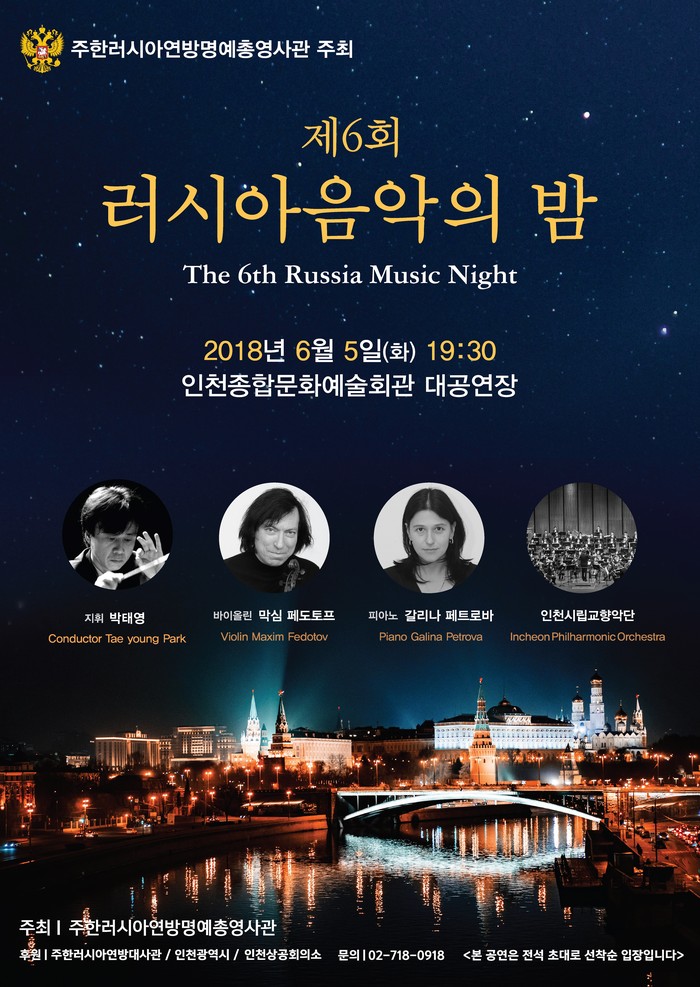 이것은 “러시아음악”의 다양함을 세계적 거장의 참여와 함께 인천 공연만을 위해 스페셜하게 제공하기 위한 초청 공관 측의 특별한 배려에 의한 것이다.