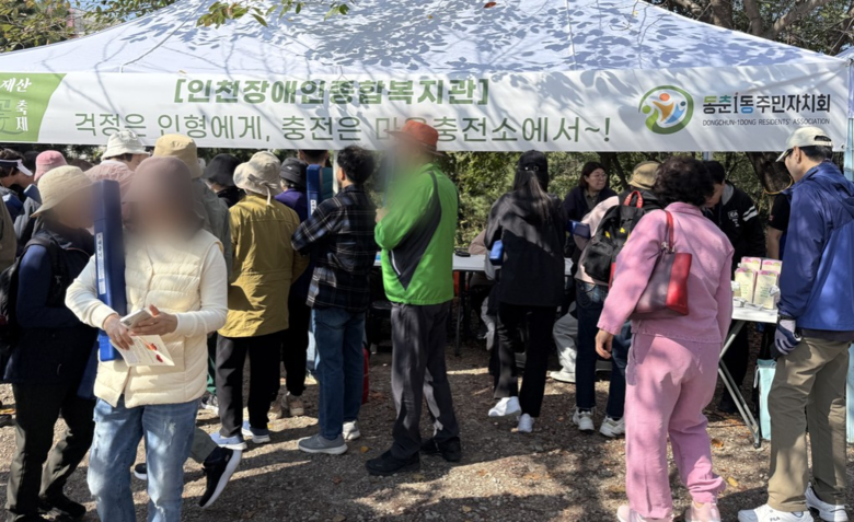 | ▲ 인천장애인종합복지관은 지난 25일 인천시 연수구 봉재산에서 열린 ‘억새꽃 축제’에 체험 부스를 마련하고 시민 대상 정신장애인 인식개선 캠페인과 참여 프로그램을 운영하고 있다. |