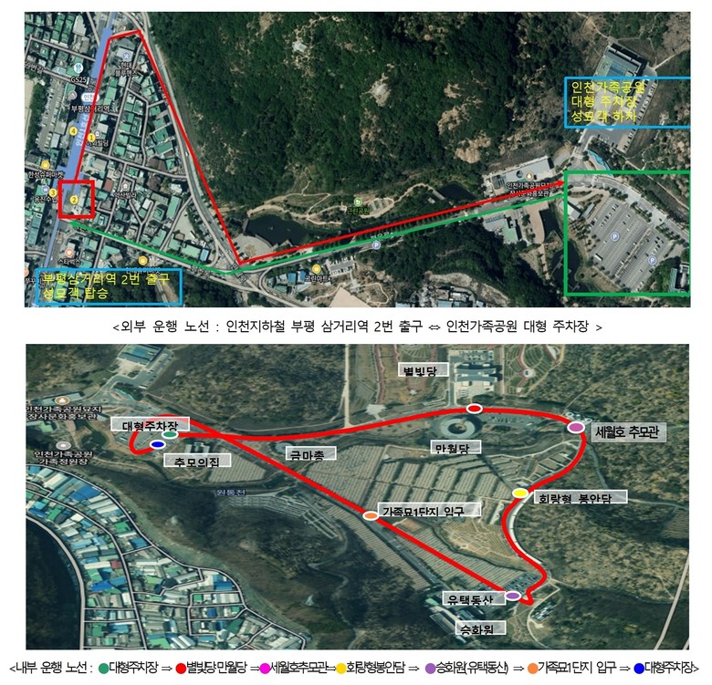 설 당일(2월 17일) 인천가족공원은 차량 진입을 전면 통제하며, 성묘객들의 이동 편의를 위해 부평삼거리역에서 가족공원까지 무료 셔틀버스를 운행한다. 또한 임시주차장 확보와 현장 안내 인력 배치를 통해 인근지역 교통혼잡을 체계적으로 관리할 계획이다.