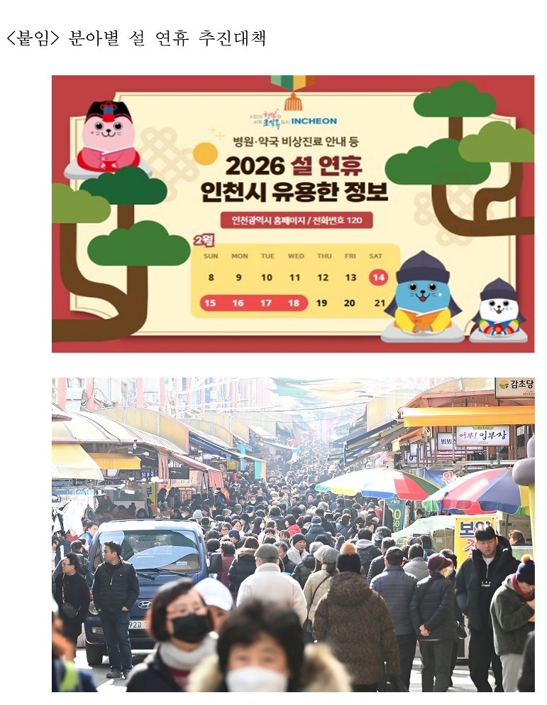 박광근 시 행정국장은 “이번 설 연휴 종합대책은 시민들이 명절 기간 실제로 체감할 수 있는 불편을 줄이고, 이동·소비·의료·추모·여가까지 전반을 아우르는 데 중점을 뒀다”며 “연휴 기간에도 행정 공백 없이 시민 안전과 편의를 끝까지 챙기겠다”고 말했다.