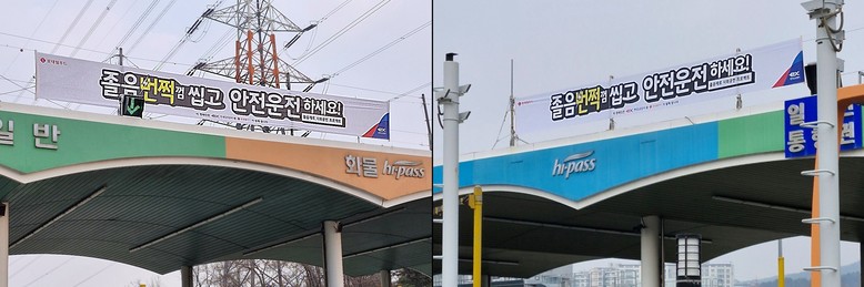현수막은 ‘졸음번쩍껌 씹고 안전운전 하세요’라는 문구와 함께 멀리서도 눈에 잘 띄는 디자인으로 제작됐다. 고속도로 입출구 영업소(톨게이트)를 비롯해 본선 육교, 방음판, 터널 입구, 졸음쉼터, 휴게소 일대까지 다양한 공간에 설치해 운전 중에도 쉽게 발견할 수 있도록 했다.