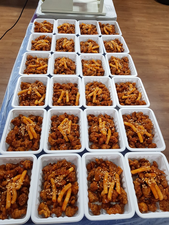 이날 봉사에는 유희자 단장,한철웅 단장 ,송혜숙 부단장, 이지유 홍보부장 등 34이 대덕구 중리동에 위치한 사랑의 사다리 밴드 사무실에서 직접 닭강정 50개를 만들어서 전달을 하였다.