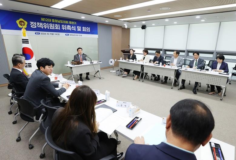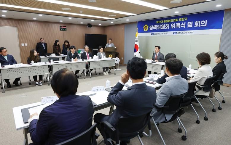 [충남 세계타임즈=백택기 기자] 충남도의회(의장 홍성현)는 지난 7일 의회 세미나실에서 ‘후반기 정책위원회’를 새롭게 구성해 출범했다.