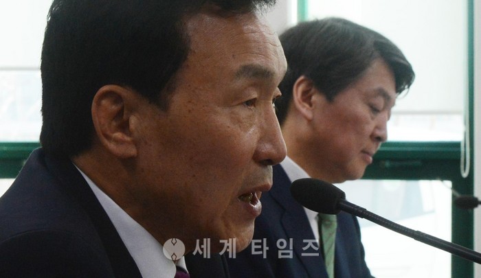 6일 오전 춘천시 교동 춘천시의회에서 열린 국민의당 강원지역 최고위원회의에서 손학규(왼쪽) 전 대표가 모두발언을 하고 있다. 2017.03.06.