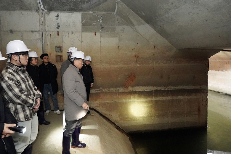 | ▲ 구미동 성남물빛정원 지하 공동구 활용도를 찾기 위해 진행 중인 시민 탐사대 프로그램에 참여 중인 신상진 성남시장 |
