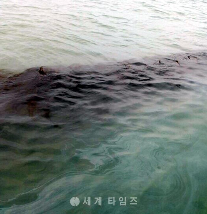 세월호 인양 작업이 진행되고 있는 가운데 24일 오전 전남 진도군 동거차도 앞 미역 양식장에 기름이 유출되고 있다. 2017.03.24. (사진=동거차도 주민 제공)