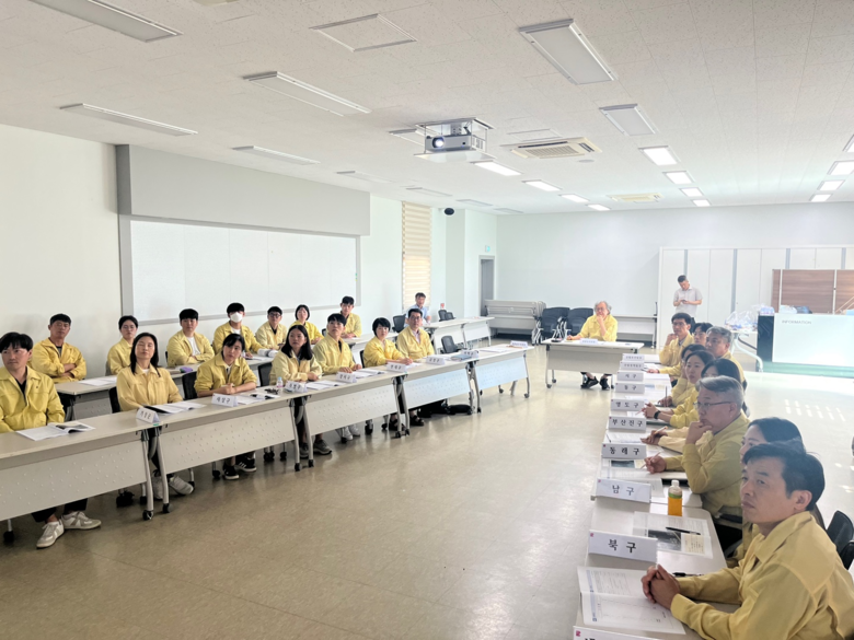 '도상훈련'은 실제 상황을 가정해 절차, 계획, 전략 등을 토론하며 숙달하는 훈련으로, 이번 훈련은 극한호우*시의 산사태 발생 우려 상황을 가정해 주민 사전대피 상황을 모의 훈련하는 방식으로 진행됐다.