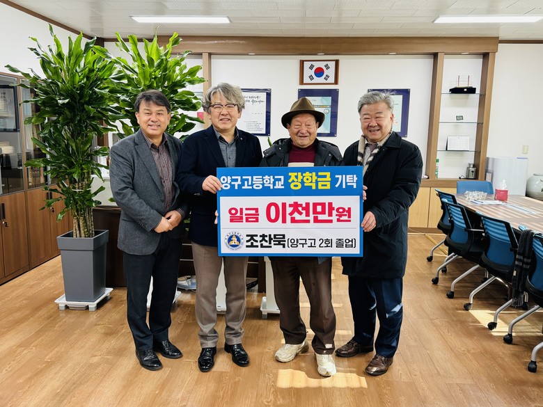 [강원도 세계타임즈=김민석 기자] 양구고등학교(교장 김재환)는 25일(목), 본교 2회 졸업생인 양구향교 종헌관 조찬묵 향교 유림으로부터 장학금 2천만 원을 기탁받았다.