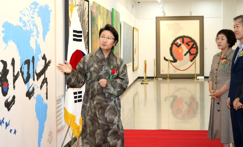 한미희 대한아리랑활력무협회 이사장은“이번 전시 행사가 한국의 전통문화와 현대 예술이 만나는 의미 있는 자리가 되었다”며“한한국 세계평화작가님의 귀한 평화의 작품들과 함께 콜라보를 하게 영광이다”고 축사를 했다.