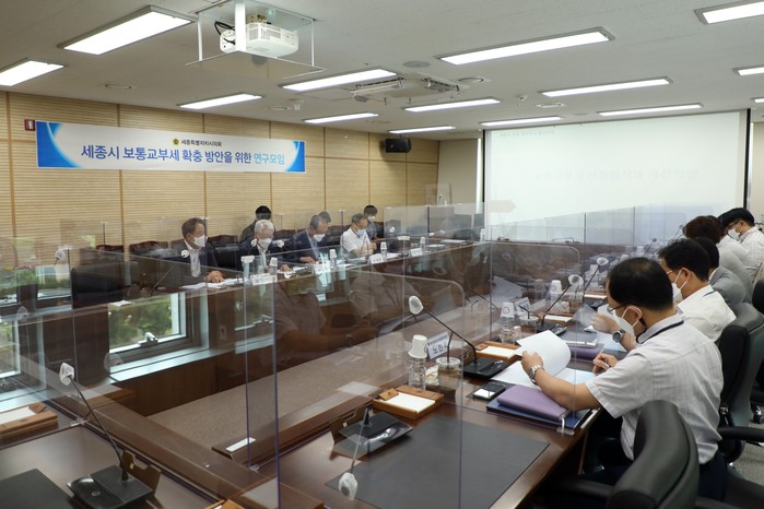 세종특별자치시의회 보통교부세 확충 연구모임(대표의원 서금택)은 19일 의회청사 의정실에서 제5차 간담회를 열고 ‘보통교부세 산정방식의 개선방안’ 연구용역 중간보고를 청취했다.