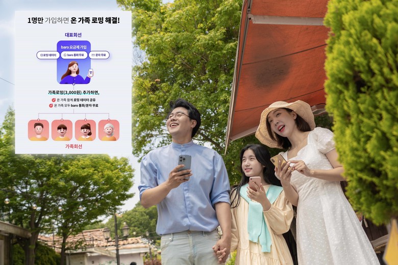 가족로밍은 바로(baro) 요금제에 가입한 가족대표 1명이 3,000원만 추가해 가입하면 모든 가족(대표 포함 최대 5명)이 로밍 데이터를 함께 사용할 수 있는 서비스다.
