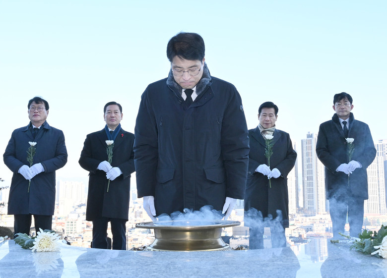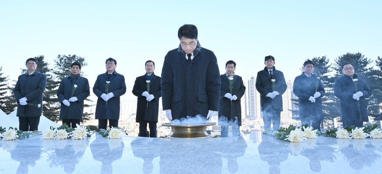 [대구 세계타임즈=한윤석 기자] 김정기 대구광역시장 권한대행 행정부시장은 2026년 병오년 새해를 맞아 1월 2일(금) 오전 9시, 시 간부 공무원 50여 명과 함께 순국선열과 호국영령들의 충의와 위훈을 기리고 대구발전의 결의를 다지기 위해 앞산 충혼탑에 신년 참배를 실시했다. 참배는 헌화, 분향, 묵념 순으로 진행했다.
