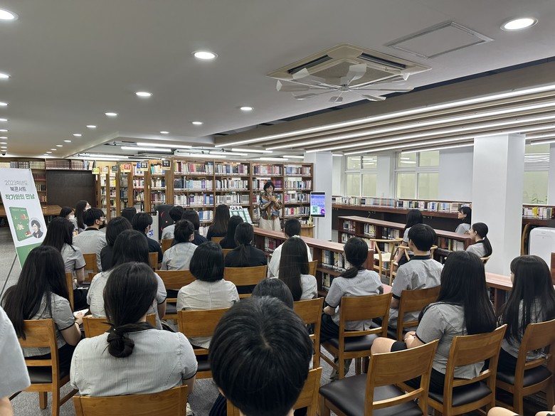 북 콘서트 사회를 맡은 2학년 이가현 학생은 “인상깊게 읽은 <아버지의 해방 일지>의 작가님을 실제로 만나게 되어 뜻깊었다. 궁금했던 부분을 작가님께 질문하여 직접 답을 듣고, 친구들과 다양한 의견을 나눌 수 있어서 알찬 시간이었다.”고 말했다.