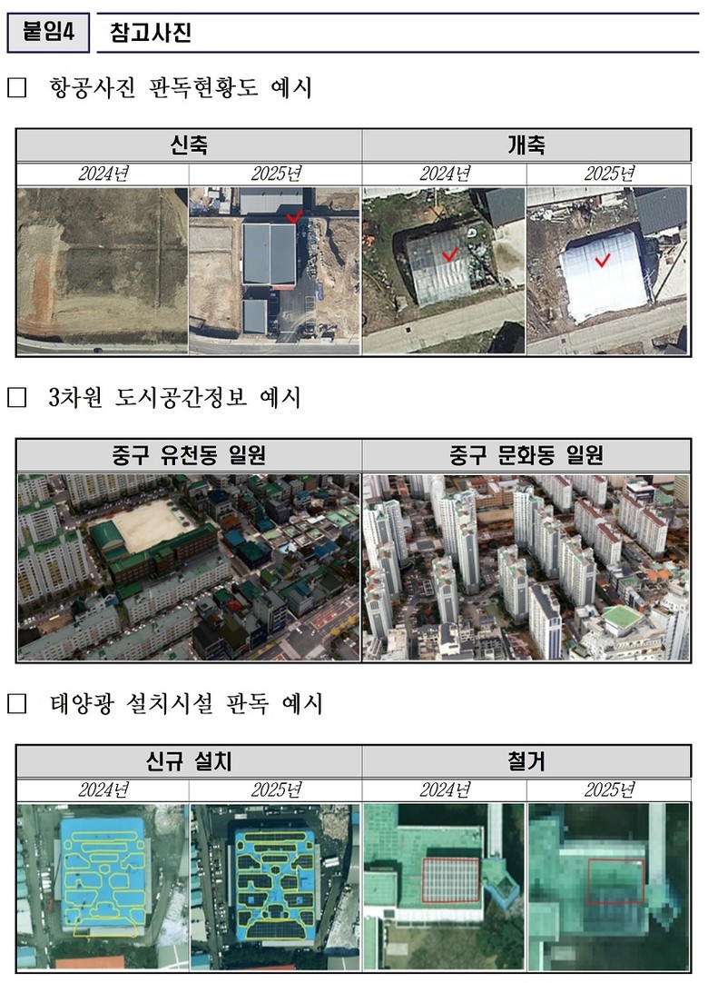 이번 사업은 국토지리정보원이 제공한 항공·정사 영상을 활용하고, 인공지능(GEOAI) 기반 항공사진 분석기술을 적용해 도시 전역의 지형지물 변동 사항을 정밀 판독하기 위해 추진됐다.