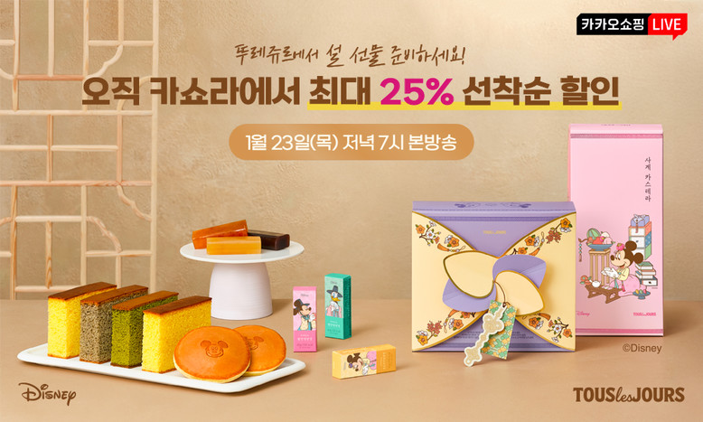 이번 카쇼라는 23일 오후 7시부터 80분간 진행되며 설날을 앞두고 소비자들에게 풍성한 혜택을 제공하기 위해 마련됐다. 월트디즈니 컴퍼니 코리아와 협업한 설 선물세트 등 뚜레쥬르의 인기 제품 20종에 대해 최대 25% 할인을 진행하며 쇼핑 라이브가 끝난 후에도 카카오 선물하기에서 최대 17% 할인 혜택을 받을 수 있다.