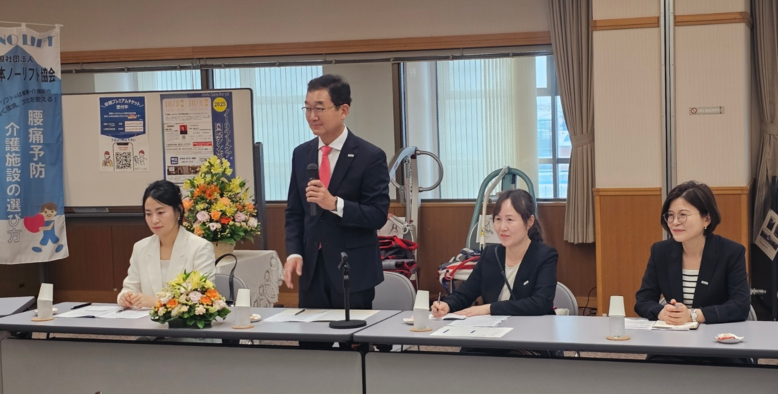 일본 ‘노리프트협회’를 방문한 정 부지사는 야스다 준코 협회장과의 면담을 통해, 환자 자립과 요양보호사 부담을 줄이는 강원 의료기기의 기술력과 활용성을 소개하고 재활 분야 협력방안을 논의했다. 노리프트협회는 환자나 시설 이용자의 자립도를 고려한 복지용구 사용을 통해 요양보호사의 부담을 덜고 질 높은 요양서비스를 보급·교육하는 일본의 대표 요양법인이다.
