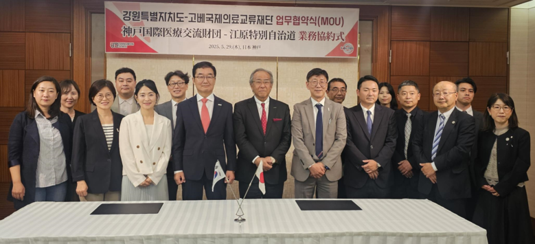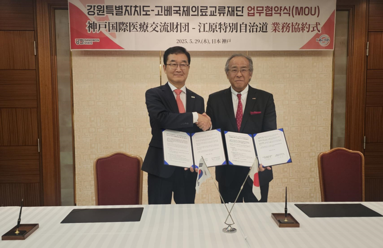 [강원도 세계타임즈=김민석 기자] 강원특별자치도(도지사 김진태)는 5월 29일(목), 일본 고베국제의료교류재단과 의료기기 분야 상생발전을 위한 업무협약(MOU)을 체결하고, 도내 기업 ‘네오에이블(대표 백승엽)’의 일본 수출계약 성과를 함께 발표했다.