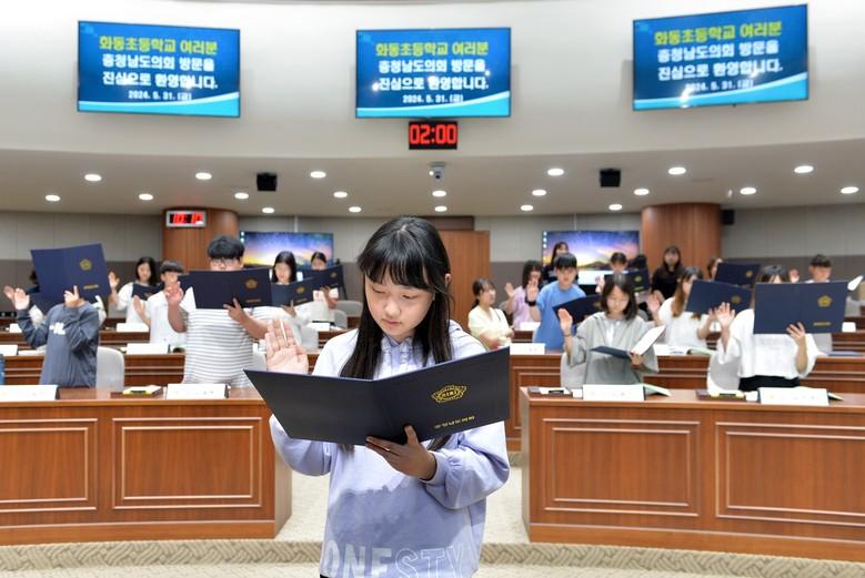 [충남 세계타임즈=백택기 기자] 충남도의회(의장 조길연)는 31일 태안 화동초등학교 학생 34명과 지도교사 2명이 참여한 가운데 ‘청소년 의회교실’을 열었다.