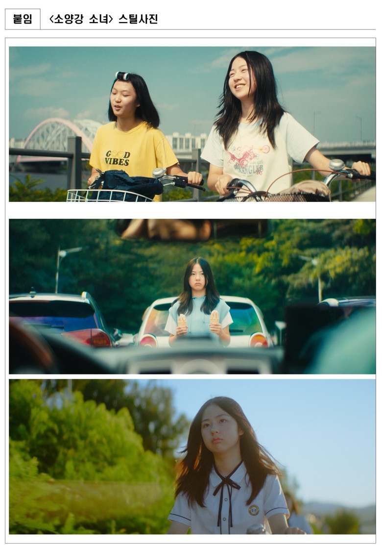 윤오성 감독의 단편영화 <소양강 소녀>는 강원문화재단 부설 강원영상위원회의 ‘2024년 강원영상콘텐츠 창작지원사업’에 선정된 작품으로, 강원특별자치도 춘천에서 나고 자란 열다섯 중학생 주아의 여름방학, 태풍과 함께 불어닥친 소녀들의 성장이야기를 그리고 있다.