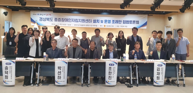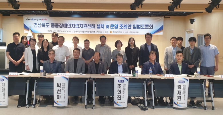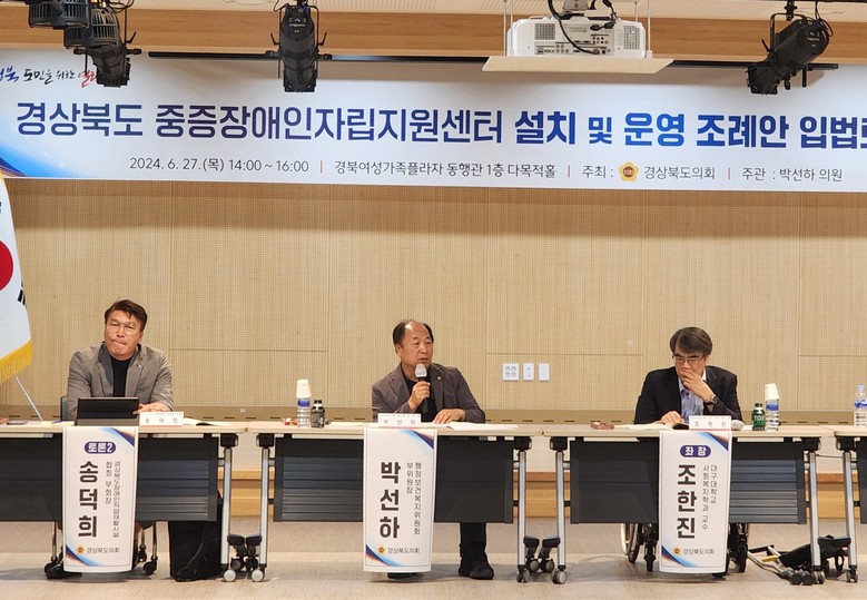 [경북 세계타임즈=한윤석 기자] 지난 6월 27일 경상북도의회 주최로 「경상북도 중증장애인자립지원센터 설치 및 운영 조례안」 입법토론회가 열렸다. 장애인복지 전문가인 행정보건복지위원회 소속 박선하 의원(국민의힘) 주관으로 개최된 토론회에는 학계, 현장전문가, 이해관계자 등이 모여 다양한 의견을 나누고 여론을 수렴하는 자리였다.