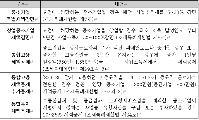 [주요 세액공제·감면 요약]