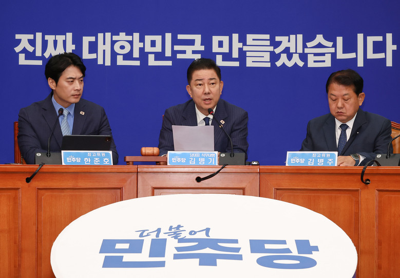 민주당 최고위원회의에서 발언하는 김병기 당대표 직무대행