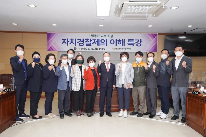 [대구=세계타임즈 한성국 기자]대구광역시 수성구의회(의장 조용성)는 5월 18일 수성구의회 제2회의실에서 의원들을 대상으로 “알기 쉬운 자치경찰 이야기”라는 주제로 전문가를 초빙해 특강을 실시했다.