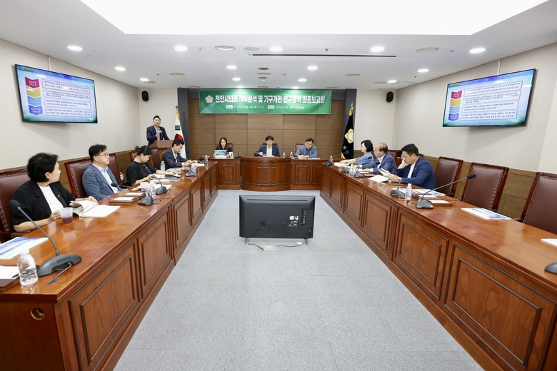 [천안시 세계타임즈=이현진 기자] 천안시의회(의장 김행금)는 지난 4일(월) 오전 10시, 의회 대회의실에서 『천안시의회 직무분석 및 기구개편 연구용역 최종보고회』를 개최했다.