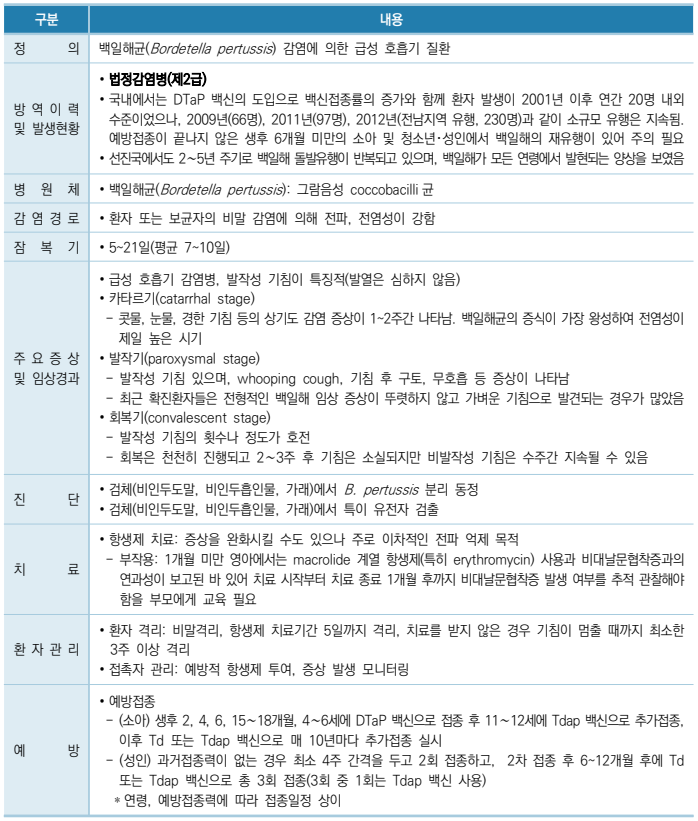 백일해의 경우도 지난해 하반기부터 현재까지 유행이 계속되고 있어 각별한 주의가 필요하다.