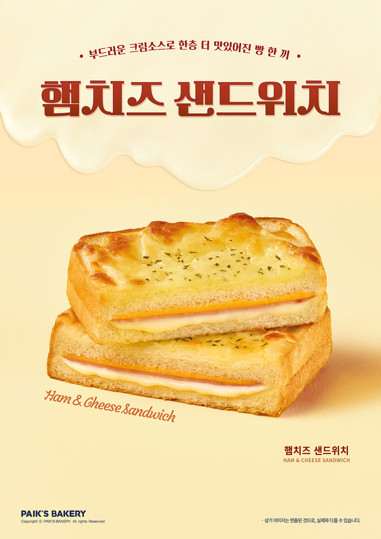 이번 ‘햄치즈 샌드위치’는 빵 사이에 프레스 햄과 모짜렐라 치즈를 넣고 특제 베샤멜 소스를 듬뿍 발라 완성한 프렌치 스타일의 샌드위치다. 부드러운 크림 풍미의 베샤멜 소스가 짭조름한 햄과 고소한 치즈를 감싸 입안 가득 깊은 맛을 선사한다.