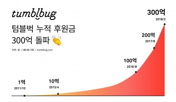 텀블벅의 후원금 누적 속도는 갈수록 빨라지고 있다. 2016년 총 누적 후원금 100억원 돌파에 이어 200억원을 돌파하기까지는 1년이 걸렸고, 그 후로 6개월 만에 누적 후원금 300억원을 달성했다.